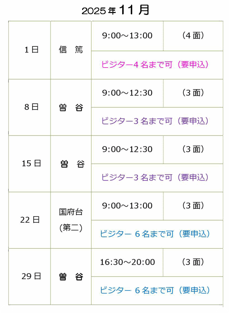レインボークラブでは、ビジターの方の練習参加を受け付けております。